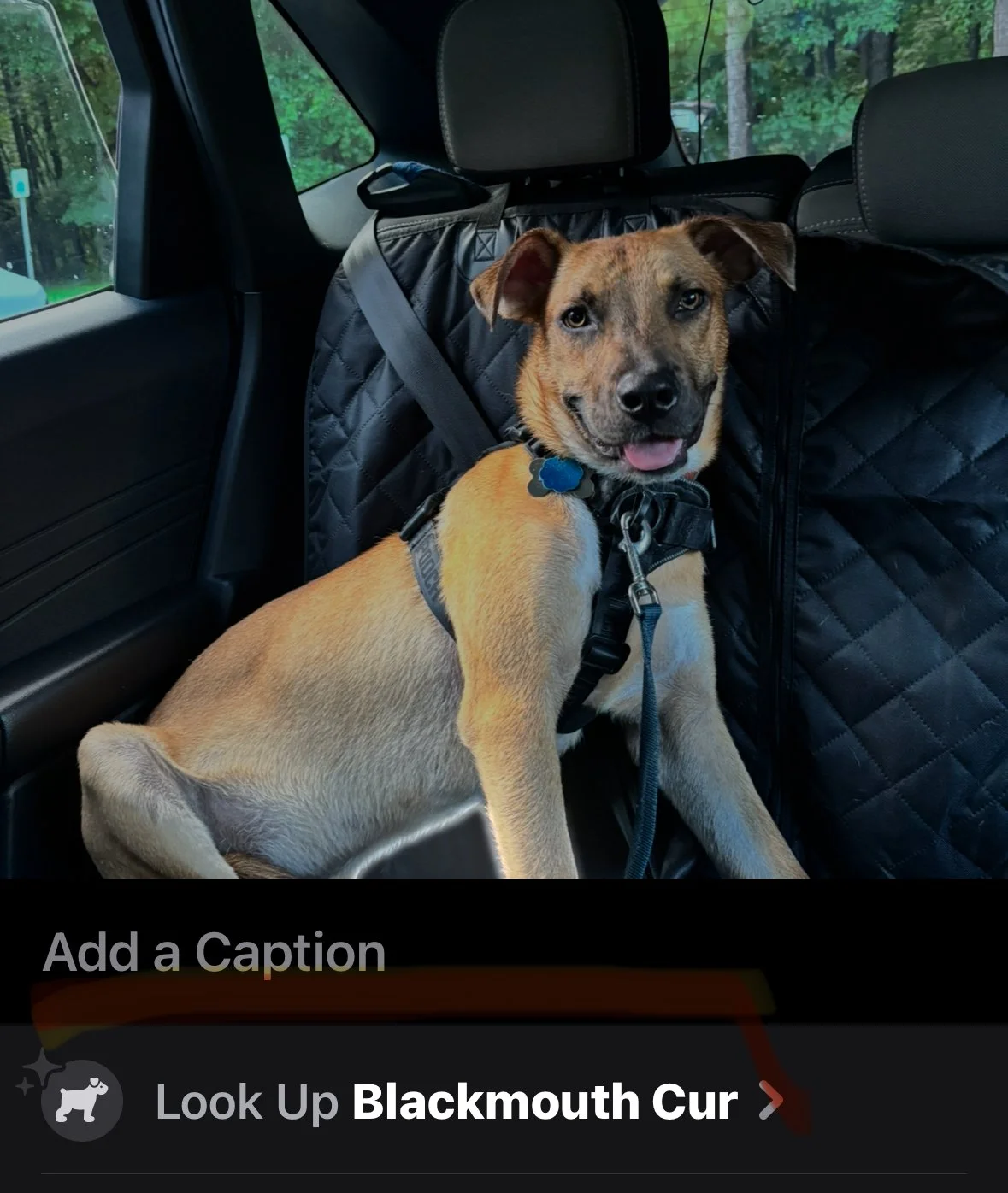 I can really see a lot of similarities between Limón and these images of Blackmouth Curs. Of course, the iPhone's phone app makes these suggestions based on the angle of the shot, so he could be a mix of other dogs.