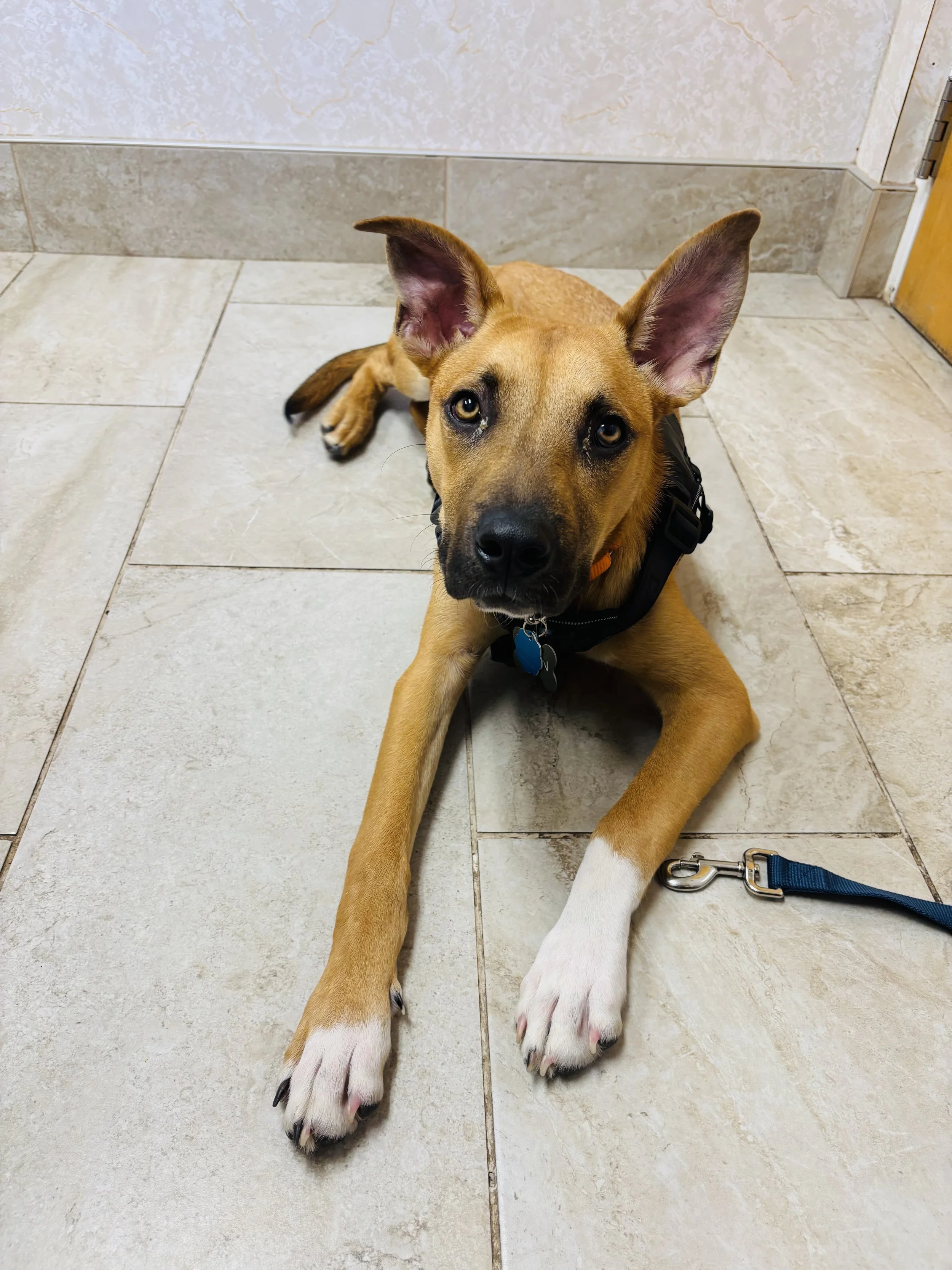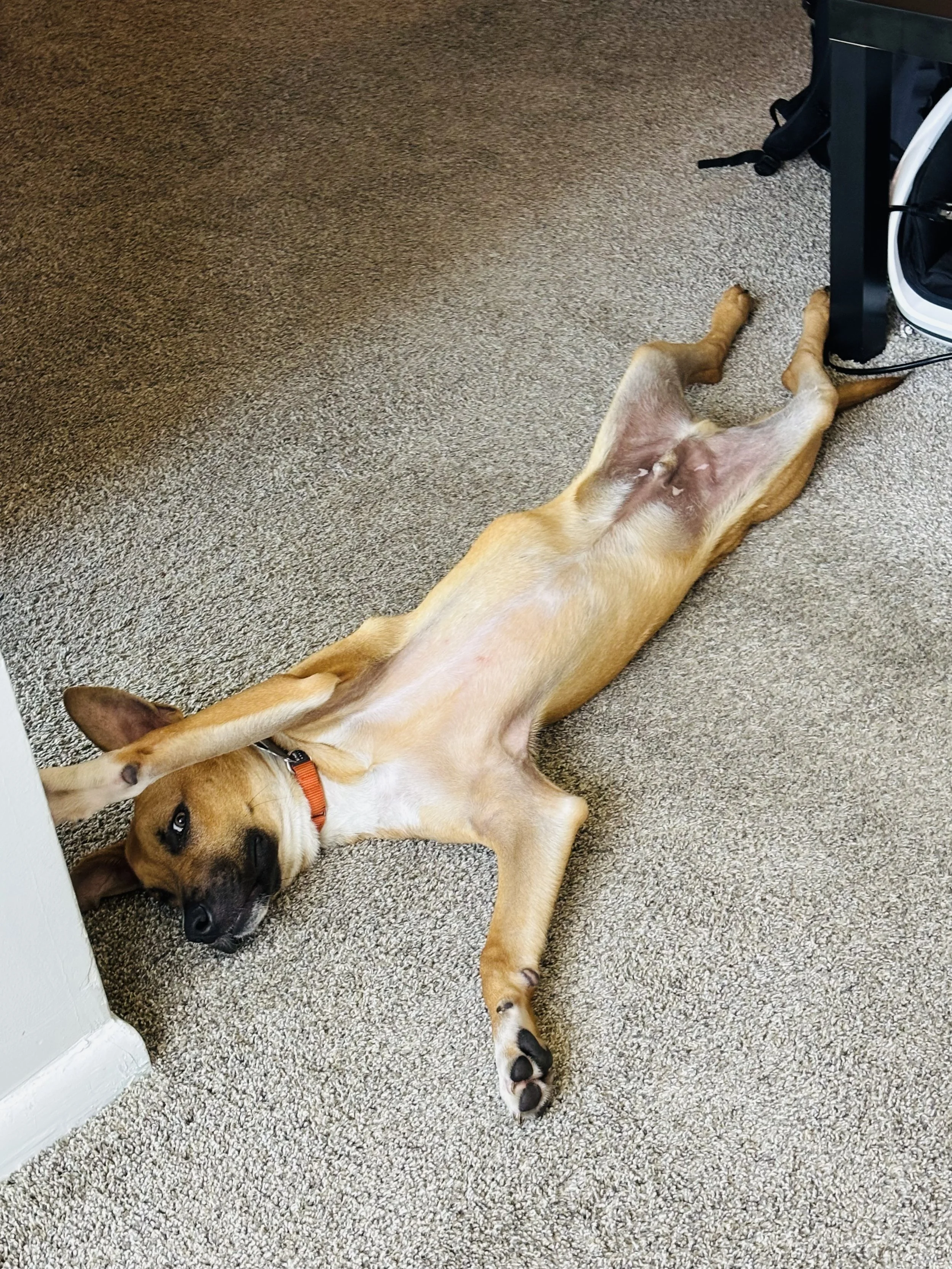 He was super calm and immediately rolled on his back to let me rub his belly. Then, he laid on my foot and rubbed himself on my leg like a cat. To be honest, we were more interested in adopting a 2+ year dog, but I think Limón picked us. There was something about his chill vibe that was intriguing. However, I think he might have been chill because he was overheated. For some of the LDAR adoption events, they have the dogs sitting outside in a hot a** PetCo or PetSmart parking lot. Come to think of it, all the dogs at that particular adoption event were really "calm".