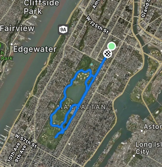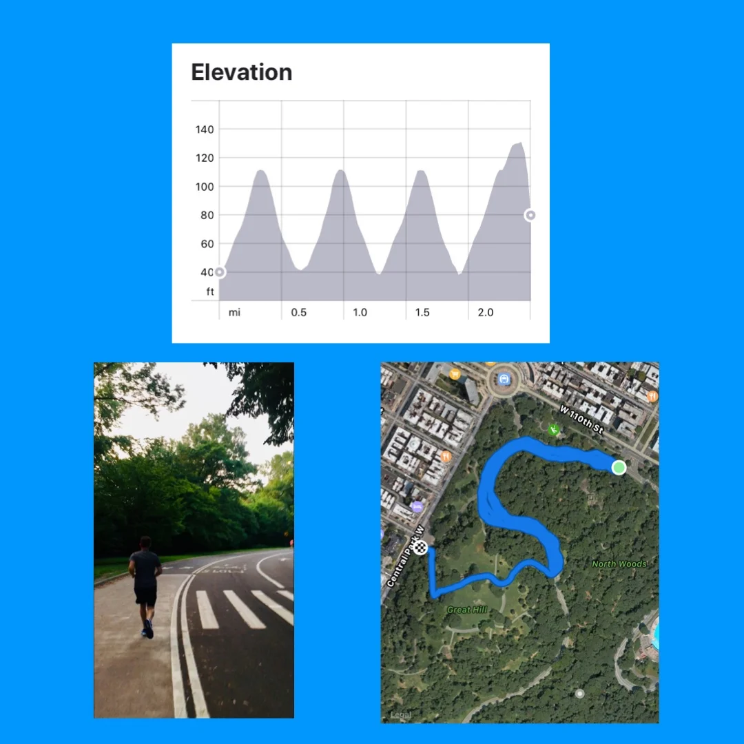 I wanted to do a few more hill intervals during this workout, but I was cutting my time kind of close. I was invited to sit on a 'what you can be with a Ph.D.' type panel at UPenn, and I had to be at the train station to travel from NYC to Philly by 9 am. I got up bright an early and did this workout on the infamous hills in the north of Central Park.